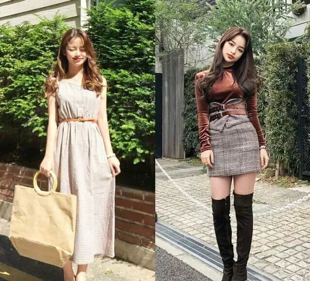 细格纹无袖连衣裙,搭配上一个牛皮纸袋,很是乖巧的感觉,变成领家的可爱小姐姐既视感。