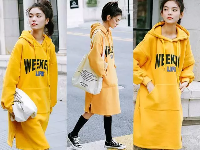卫衣的最大特点就是减龄,那么这款卫衣的升级版——卫衣裙,也同样自带着减龄的效果,亮黄色,上身不仅吸睛好看,还特别地吸睛洋气,连帽绳多了很多休闲感,和卫衣宽松的版型搭配起来,轻松显瘦,还满满的休闲运动风,直筒的版型,对身材的包容性还是蛮强的,谁都可以驾驭的款式,下摆做了小小开叉的设计,还可以增加粗腿女生的随意感,休闲又自由,前面个性的字母设计和大大的口袋装饰,满满的个性又充满了细节感,搭配黑色帆布平底鞋和黑色中筒袜,春季这样穿就对了,舒服好看又时髦,超级青春减龄的。